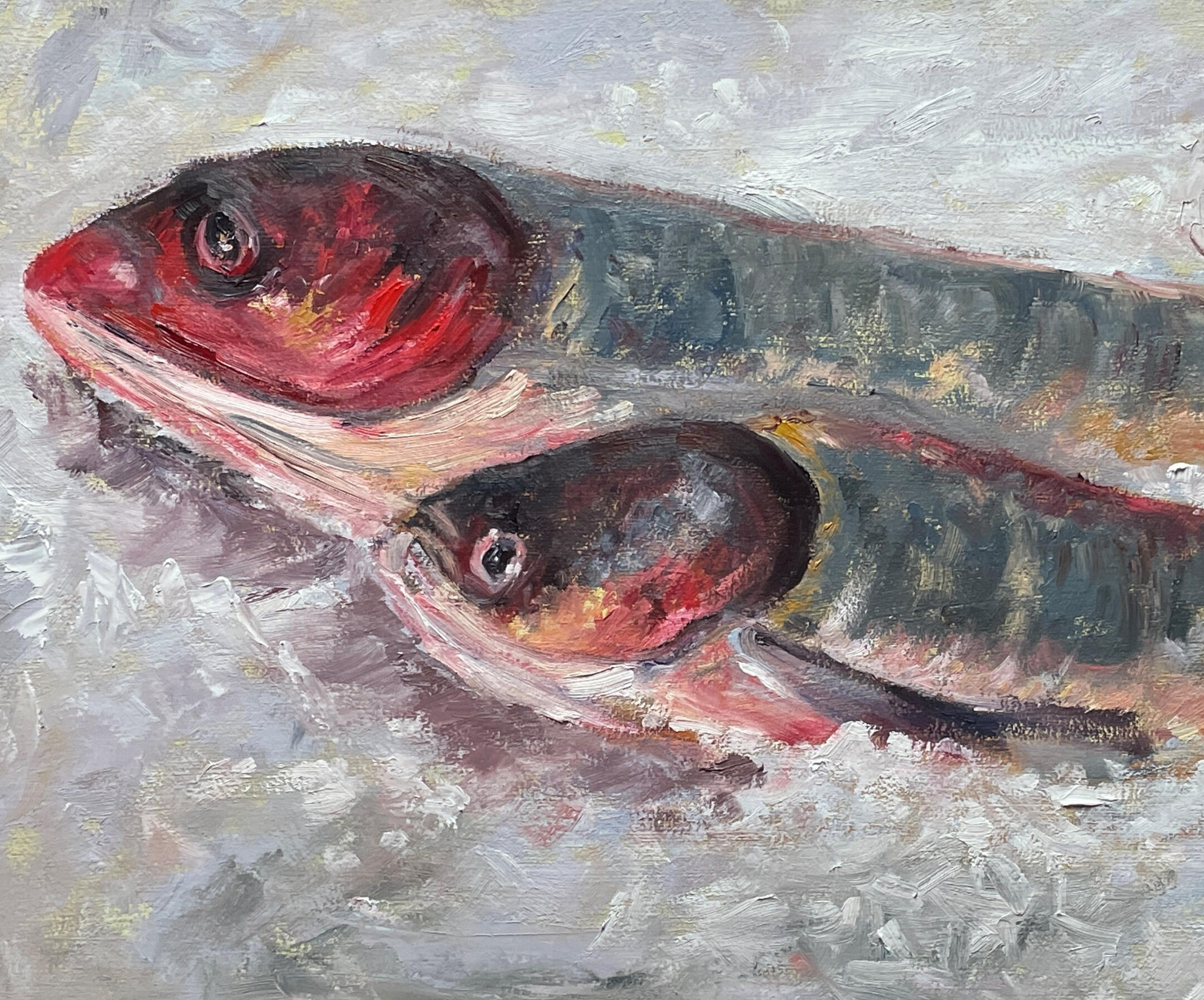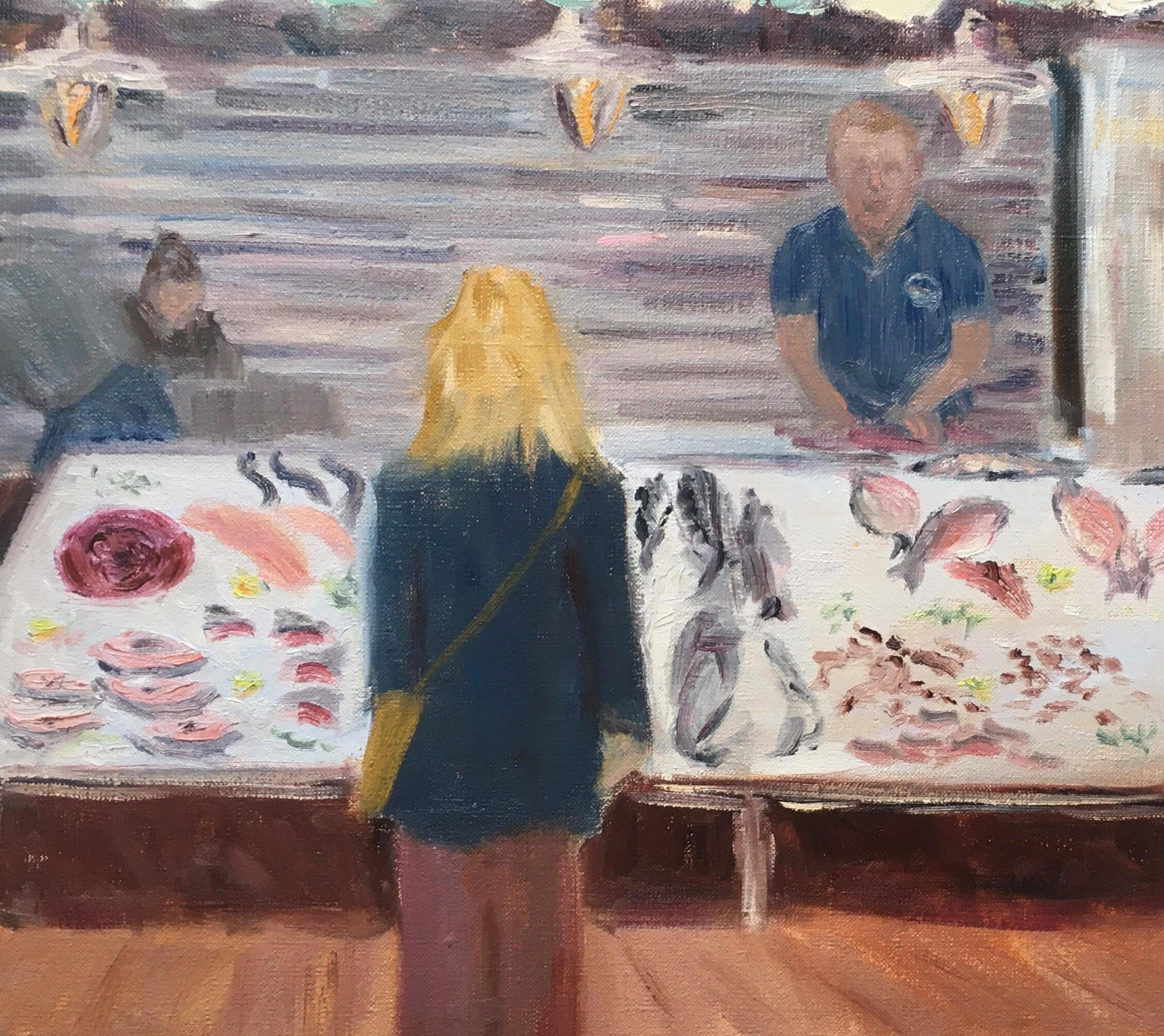 Lady buying fish, 70x50